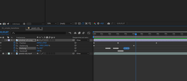 Dazu kann man die Keyframes Easyeasen. Das macht man indem man sie markiert und dann auf F9 drückt. Das macht man damit das Video smoother läuft und besser aussieht.
